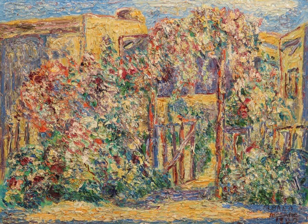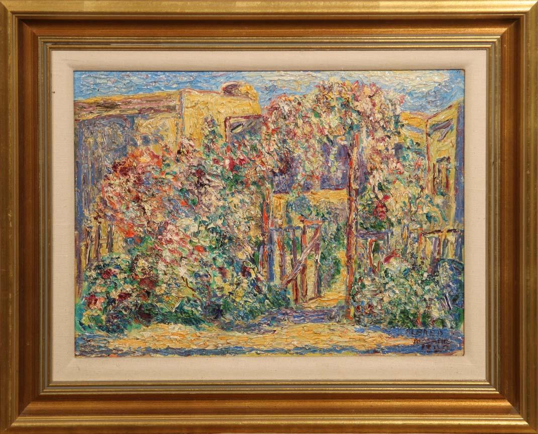 Alfred Morang (1901-1958). Rose Garden, 1940. 12" x 16 1/8" oil on canvasboard. Signed lower right. (est $5,000-7,000). For condition reports please visit: www.auctioninsantafe.com/cr2011.pdf