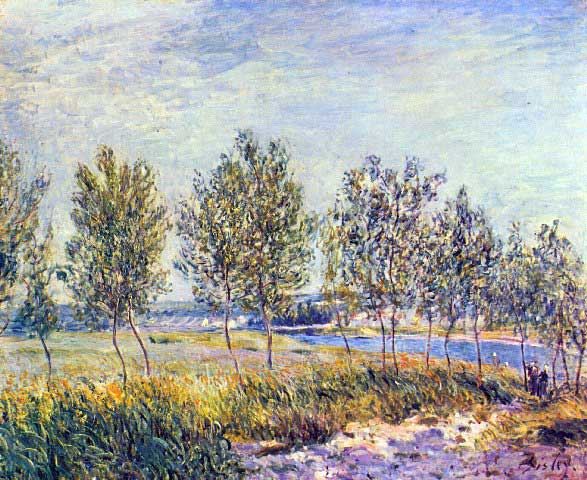 Artist: Alfred Sisley - Title: By Meadow - Medium: Fine Art Reproduction Giclee on Canvas - Image Size: Approximately 16.25 inches x 20 inches - Unframed on Unstretched Canvas - Biography: Alfred Sisley was an Impressionist landscape painter who was born and spent most of his life in France, but retained British citizenship. He was the most consistent of the Impressionists in his dedication to painting landscape en plein air.