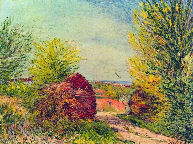 Artist: Alfred Sisley - Title: Veneux-Nadon in the Spring - Medium: Fine Art Reproduction Giclee on Canvas - Image Size: Approximately 14.75 inches x 20 inches - Unframed on Unstretched Canvas - Biography: Alfred Sisley was an Impressionist landscape painter who was born and spent most of his life in France, but retained British citizenship. He was the most consistent of the Impressionists in his dedication to painting landscape en plein air.