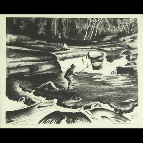 Alfred Wands (1904-1998) (Colorado) Lithograph, "Trout Fisherman", #87/100, image size 8 3/4" x 11", pencil signed
