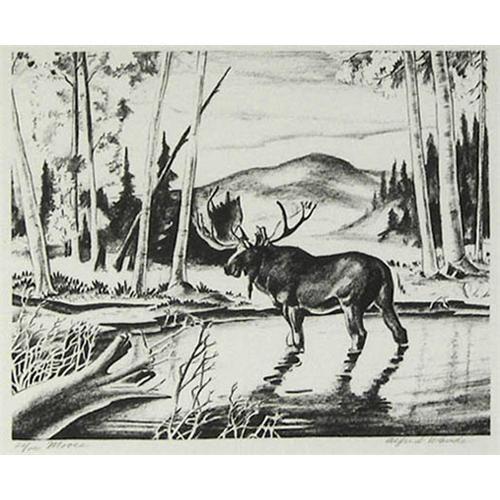 Alfred Wands (1904-1998) (Colorado) Lithograph, "Moose", #20/100, image size 8 3/4" x 10 7/8", pencil signed