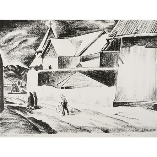 Alfred Wands (1904-1998) Broadmoor Art Academy, Litho, "Church in Taos, New Mexico" 55/100, 9" x 12 1/2", Pencil signed lower right.