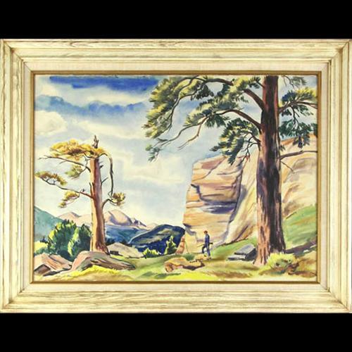 Alfred Wands (1904-1998) (Colorado) Watercolor, Hunter in Landscape, sight size 21 1/2" x 29 1/2", signed lower left