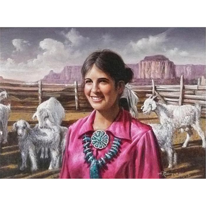 Alfredo Rodriguez (1954-) Oil on Board "At the Corral" Signed lower right 9 1/2" x 12"