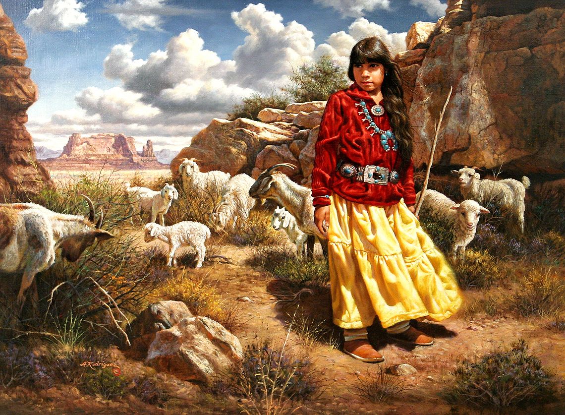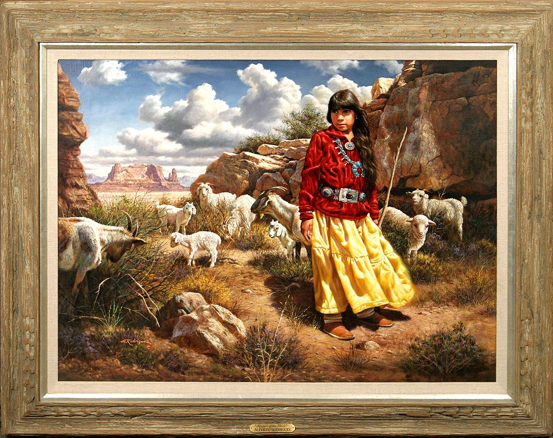 Alfredo Rodriguez (b.1954). Keeper of the Flock. 30" x 40" oil on canvas. Signed lower left: A. Rodriguez © . Dated verso 1987. (est. 12,000-18,000). CONDITION REPORTS: www.auctioninsantafe.com/docs/cr2012.pdf