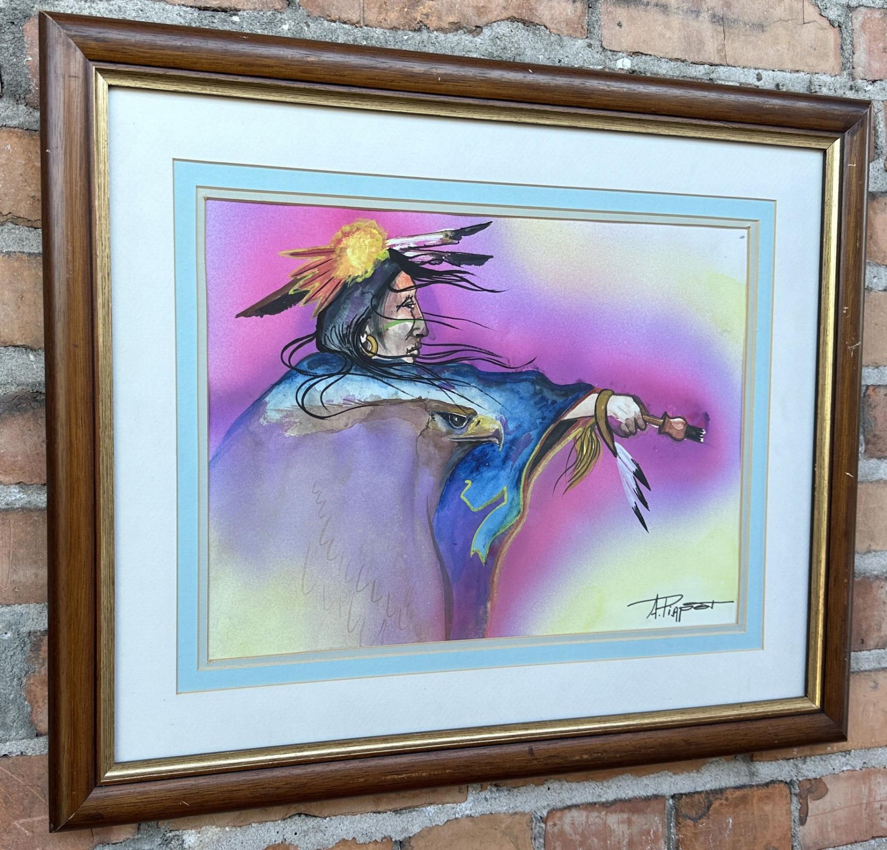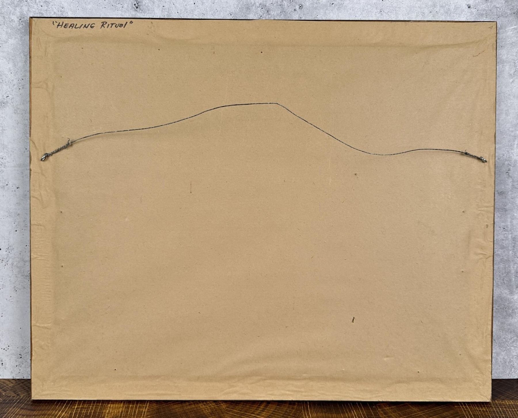 Title is Healing Ritual. 18 1/2" by 22 1/2" framed. Algie Piapot (20th century) was active/lived in Montana. Algie Piapot is known for Painting.