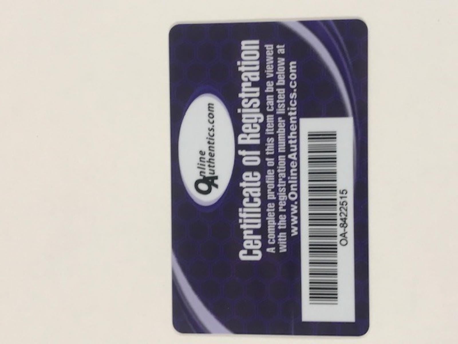 Regarding Memorabilia Items - All autographed memorabilia comes with a Certificate of Authenticity. SAA may have an interest in certain third-party authenticators and bidder hereby waives any potential conflicts therein related to SAA's relationship with such authenticators. SAA is not responsible for the opinions of any of the third-party authenticators. You should in no way rely exclusively on such third-party opinions without conducting your own due diligence prior to bidding. All Certificates of Authenticity may only be relied upon for one year from the date of sale of any item. SAA, and its consignors may be determined to be "Dealer(s)" within the meaning of California Civil Code Section 1739.7(a)(4) and as such make the following statement: SALE OF AUTOGRAPHED SPORTS MEMORABILIA: AS REQUIRED BY LAW, A DEALER WHO SELLS TO A CONSUMER ANY SPORTS MEMORABILIA DESCRIBED AS BEING AUOTOGRAPHED MUST PROVIDE A WRITTEN CERTIFICATE OF AUTHENTICITY AT THE TIME OF SALE. THIS DEALER MAY BE SURETY BONDED OR OTHERWISE INUSRED TO ENSURE THE AUTHENTICITY OF ANY COLLECTIBLE SOLD BY THIS DEALER.