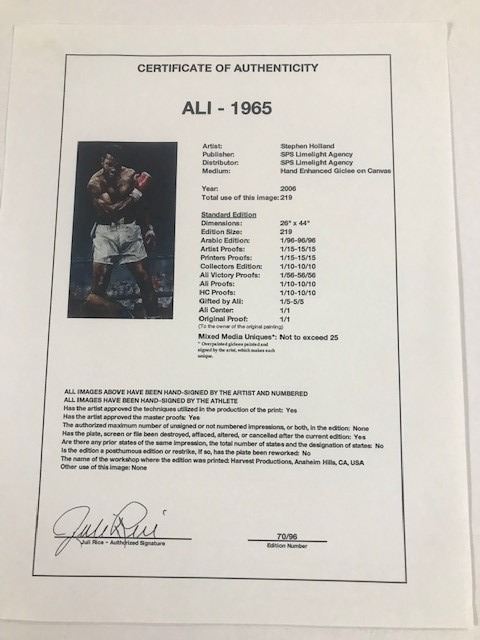 "Ali - 1965" by Stephen Holland - Limited Edition #70 of 96 Hand Enhanced Giclee on Canvas 32"x48" framed