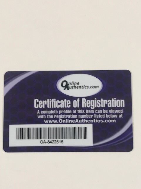 Regarding Memorabilia Items - All autographed memorabilia comes with a Certificate of Authenticity. FAA may have an interest in certain third-party authenticators and bidder hereby waives any potential conflicts therein related to FAA's relationship with such authenticators. FAA is not responsible for the opinions of any of the third-party authenticators. You should in no way rely exclusively on such third-party opinions without conducting your own due diligence prior to bidding. All Certificates of Authenticity may only be relied upon for one year from the date of sale of any item. FAA, and its consignors may be determined to be "Dealer(s)" within the meaning of California Civil Code Section 1739.7(a)(4) and as such make the following statement: SALE OF AUTOGRAPHED SPORTS MEMORABILIA: AS REQUIRED BY LAW, A DEALER WHO SELLS TO A CONSUMER ANY SPORTS MEMORABILIA DESCRIBED AS BEING AUOTOGRAPHED MUST PROVIDE A WRITTEN CERTIFICATE OF AUTHENTICITY AT THE TIME OF SALE. THIS DEALER MAY BE SURETY BONDED OR OTHERWISE INUSRED TO ENSURE THE AUTHENTICITY OF ANY COLLECTIBLE SOLD BY THIS DEALER.