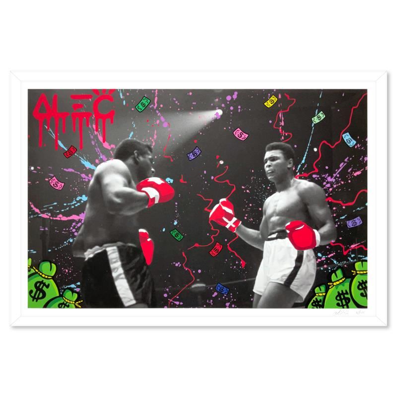 Ali #2 by Monopoly, Alec. All available information is listed in the description and shown in the photo. "Ali #2" is a limited edition giclee on paper by Alec Monopoly, numbered 76/150 and hand signed by the artist. This piece comes custom framed. Includes Letter of Authenticity. Measures approx. 37.5" x 25.5" (frame), 34" x 22" (image).