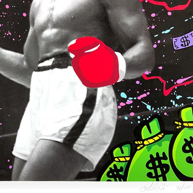 "Ali #2" is a limited edition giclee on paper by Alec Monopoly, numbered 76/150 and hand signed by the artist. This piece comes custom framed. Includes Letter of Authenticity. Measures approx. 37.5" x 25.5" (frame), 34" x 22" (image).