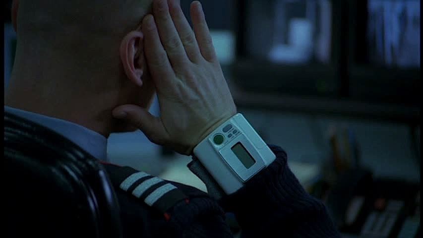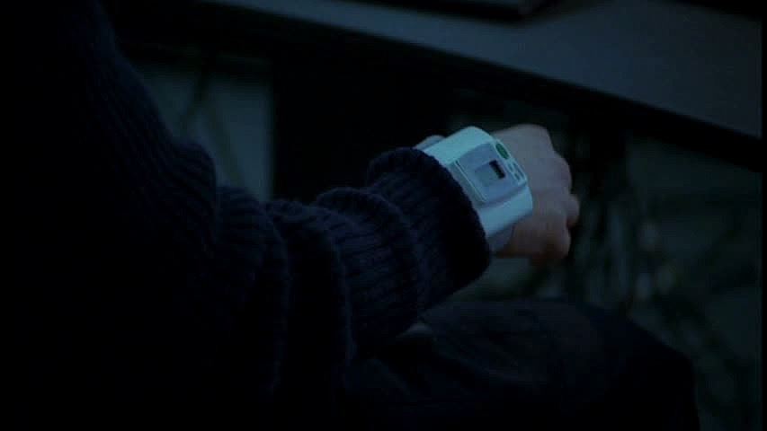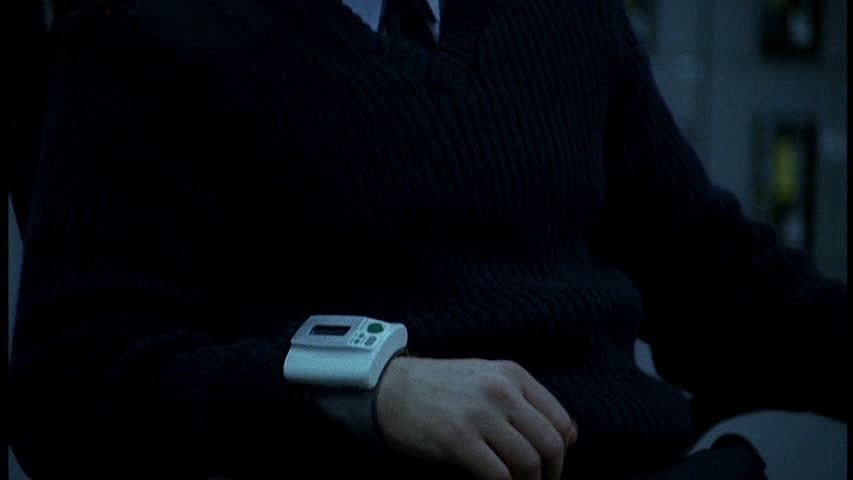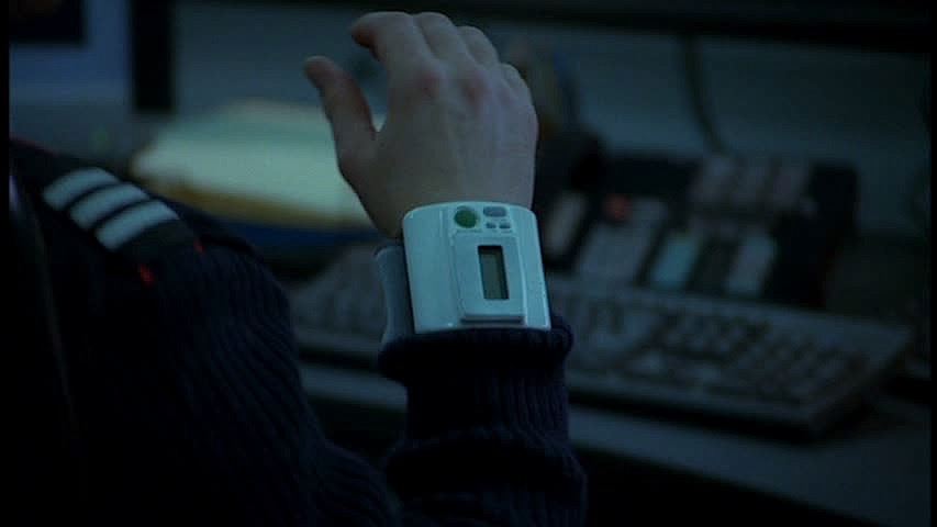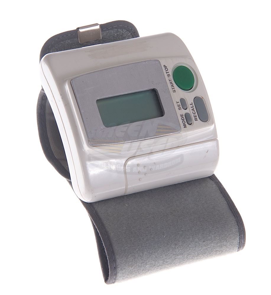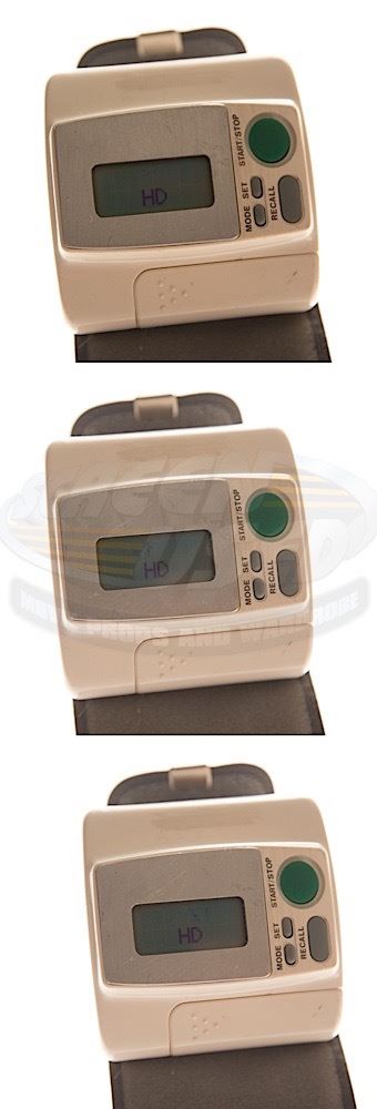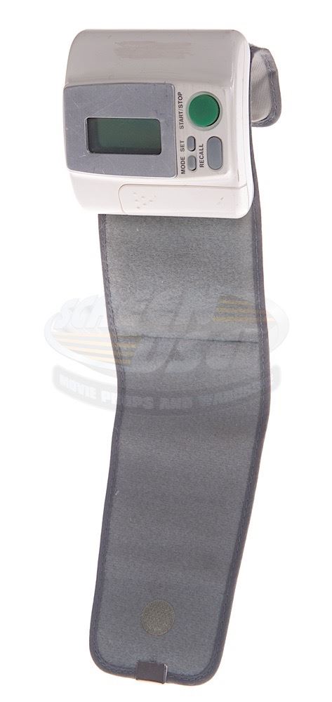 (ABC-TV, 2001-06) This prop kill switch device was acquired by the production and customized for use by various actors in the season two episode titled "Second Double". The piece is a working prop as a "server farm kill switch" and features a secret switch hidden within the battery compartment that turns the display on and the green button activates another movement in the display. A Velcro wrist band is attached, minor wear from use is present.