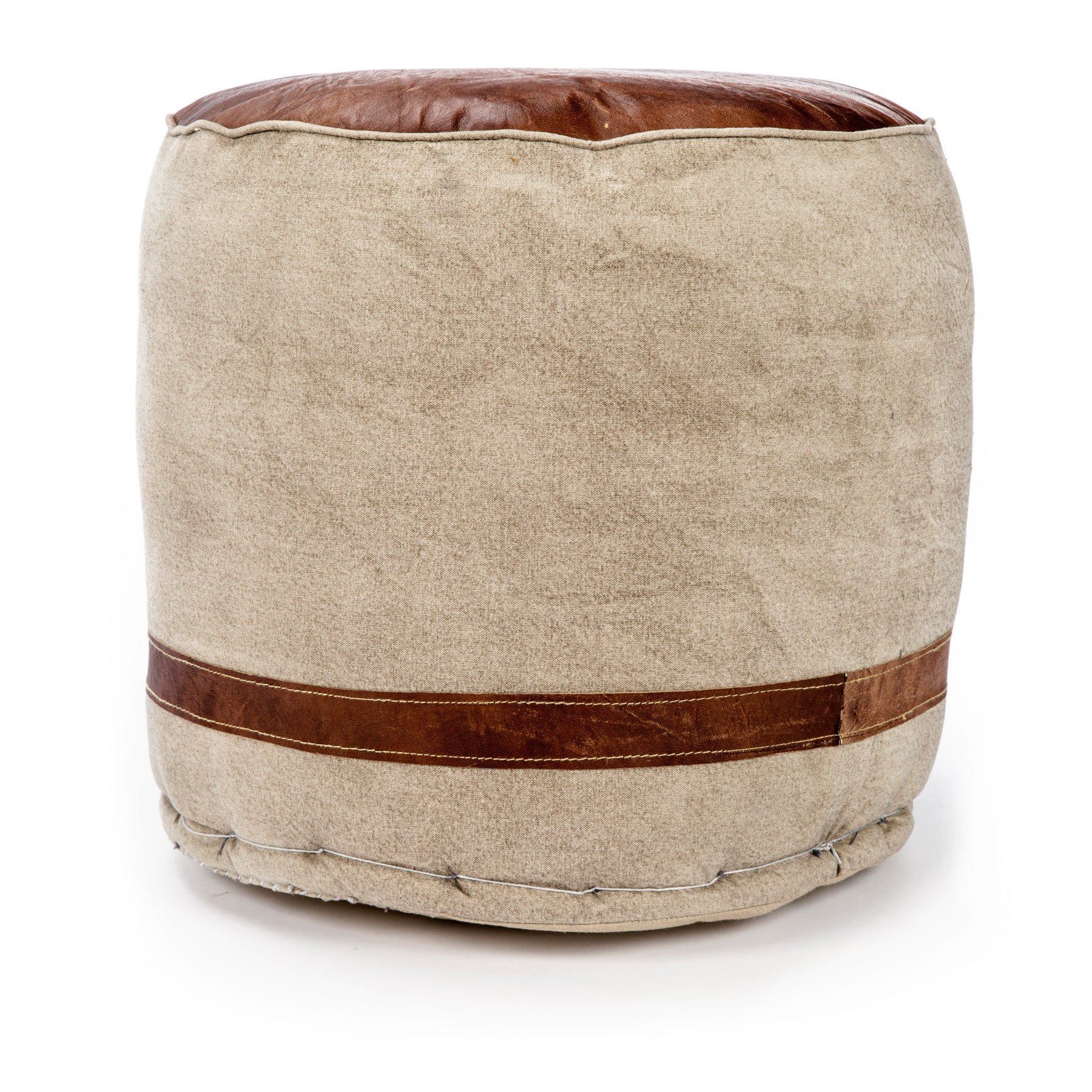 Whimsical And Care-free, The Alice Is An Ottoman Unlike Any Other You’ll Find. Fashioned After The Original Design That Included Reclaimed Goat Leather On The Top And An Accent Stripe Around The Bottom, The Alice Is Made From Fabric Reminiscent Of Old, Repurposed Military Tents To Give You Texture In Your Furnishings That Draws The Eye. The Cylindrical Shape And Attention To Detail Make The Alice Unique Piece To Add To Your Home, One That Will Serve You Well As A Stool, A Foot Rest, Or An End Table.