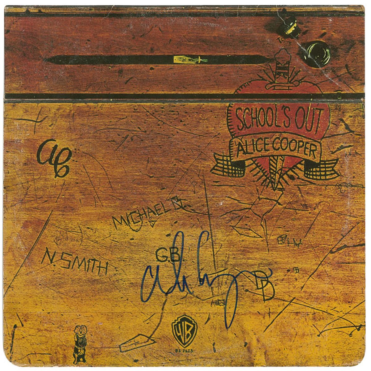 School’s Out flip-top album signed on the front cover in blue felt tip. Some light wear and creasing, otherwise fine condition. The record is included.