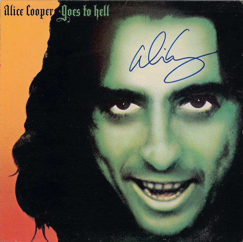 Alice Cooper Goes to Hell album signed on the front cover in blue felt tip. In fine condition, with a couple small edge creases.