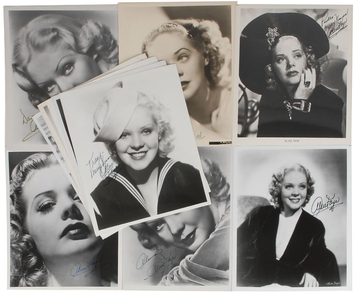 Eleven glossy and semi-glossy photos of the talented leading lady, ranging in size from 9.75 x 8 to 8 x 10.25, each signed in ink or felt tip by Faye, with all but four inscribed. In overall very good to fine condition.