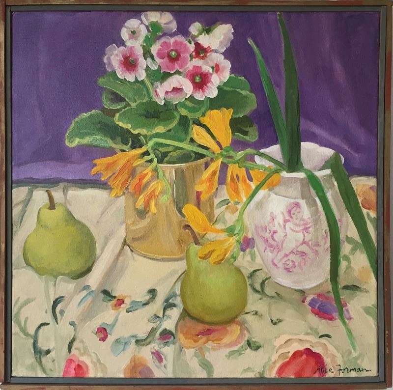 Alice Forman, Still Life with Flowers and Pears, Oil Painting