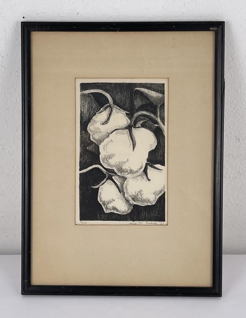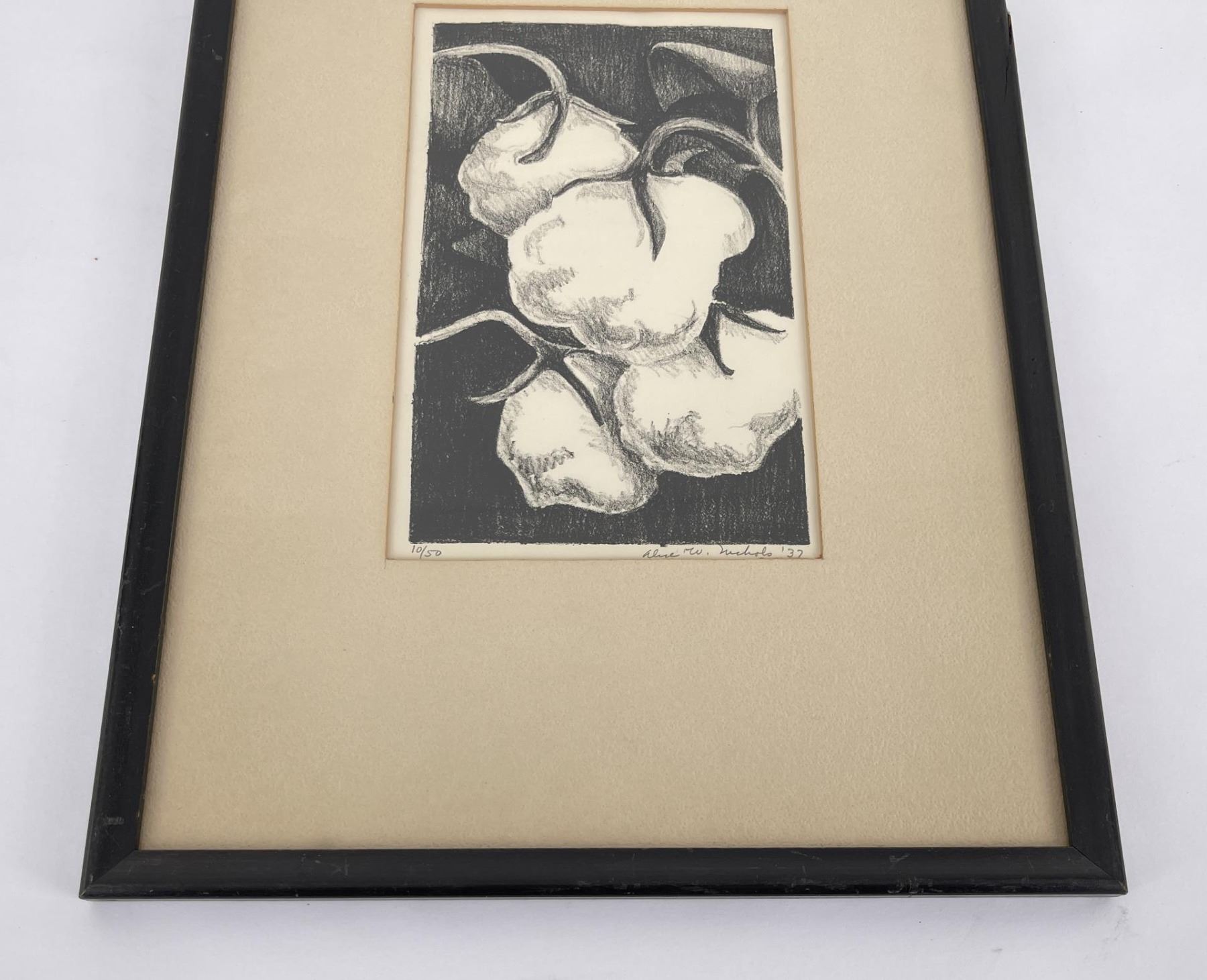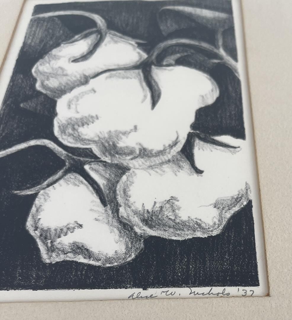 11" by 15 1/4" framed. Alice W. Nichols (Born 1906) was active/lived in Indiana, Missouri. Alice Nichols is known for Collage, painting, teaching.