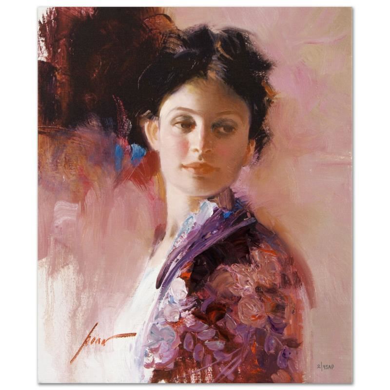 "Alice" is a limited edition giclee on stretched canvas that has been hand-embellished by Pino himself, AP Numbered and Hand signed by Pino (1939-2010). Includes Certificate of Authenticity. Measures approx. 16" x 20" (image).