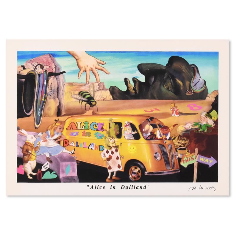 "Alice in Daliland" is a limited edition artist proof on paper by Nelson De La Nuez, numbered and hand signed by the artist. Includes Letter of Authenticity. Measures approx. 15" x 10".