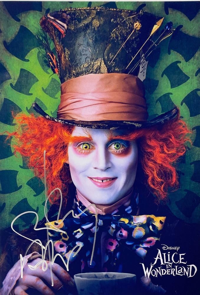 Alice in Wonderland facsimile signed movie photo autographed by Johnny Depp. 8x10 inches. This item is a reprint of an original autograph