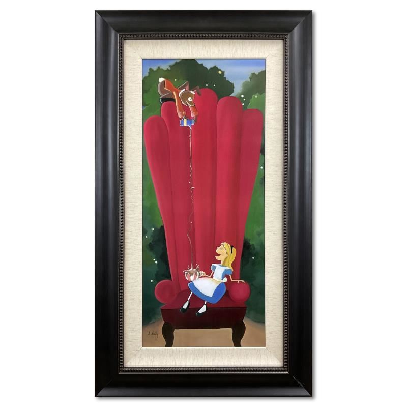 "Alice in the Big Chair" is a limited edition giclee on canvas by Katie Kelly, numbered and hand signed by the artist. This piece comes framed. This piece is licensed by Disney Fine Art. Includes Letter of Authenticity. Measures approx. 22" x 39" (frame), 12.5" x 29.5" (image). There may be very minor wear on the corners but the piece is in good condition.