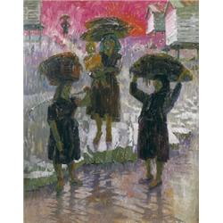 In 1955 Alicia Boyle first visited Spain and there found a landscape imbued with a sense of poetry and mythology, similar to those which she had previously discovered in Greece and Ireland. In particular she was struck by the town of El Pindo on the Galician coast, where the unusually shaped hill had once been a sort of ‘Mt Olympus’ for the Celtic people who lived there. Hilary Pyle describes this period in her art as a time when location took precedence over legend and when she began to achieve “the spiritual sense of matter her master Ernest Jackson had urged her to pursue”, identifying the present work as one such which possessed “this inherent inspiration of locality” (op. cit. , p. 13).