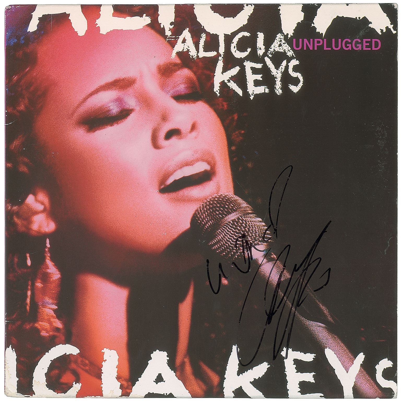 Unplugged album signed on the front cover in black felt tip by Alicia Keys. In fine condition, with wear and creasing to edges. The record is included.