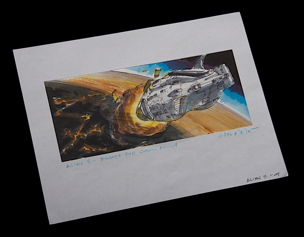 (20th Century Fox, 1992) An original concept storyboard based on Director Vincent Ward's vision of the film before David Fincher took the directing reigns and created the final look of the film. The storyboard measures 9" x 4" and is applied to a white 8.5" x 11" page with handwritten notes and date.
