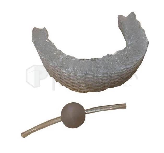 Android neck components used in the production of the science fiction horror film Alien: Covenant. The crew of a colony ship, bound for a remote planet, discover an uncharted paradise with a threat beyond their imagination, and must attempt a harrowing escape. These parts were used in the Android Walter when David rips his head off. This set includes two pieces, one a small ball with clear tubing protruding from the ends, and the other a section of white honeycomb type material. This set remains in excellent, production used condition.