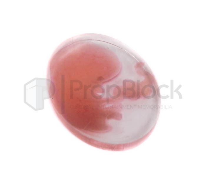 Production-made human embryo created for Alien: Covenant directed by Ridley Scott. In the film the Covenant was a colony ship sent into deep space to found a human colony on an alien world. The ship's stores included many materials necessary to establish the colony. Among these materials were frozen human embryos that would be used to help populate the colony once it was established. The prop is an embryo decal affixed to a piece of clear acrylic. The embryo measures 2 x 1 ½ x ¼ inches.
