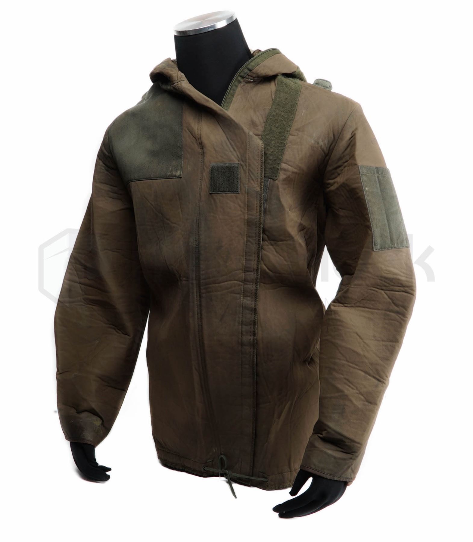 Expedition jacket used by the character of Lopez, actor Demian Bichir in the 2017 Ridley Scott horror film Alien: Covenant. The crew of a colony ship, bound for a remote planet, discover an uncharted paradise with a threat beyond their imagination, and must attempt a harrowing escape. These style jackets were use by the colonists and can be seen throughout the film. This just made jacket is brown in color with various off color patches, a zip up front, and hidden Velcro closure on the from that runs from the bottom of the jacket to the top of the face section. The jacket features a hood with a section of material to cover the wearers face if need be. This piece was custom made by the production and remains in excellent, production used condition.