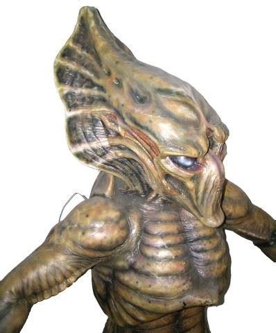 From the alien action adventure film Alien Hunter (2003) starring James Spader is the amazing hero green custom built alien figure. The figure is constructed foam and latex with a black custom costume. It measures approximately 80" tall and is seen on screen throughout the film. Created by the award winning Make Up And Effects Laboratories, Hollywood's premiere special effects, animatronics and prosthetic make-up company for the entertainment industry. Make Up and Effects Laboratories has won 9 EMMY Awards, and the Academy Award for Driving Miss Daisy and worked on hit TV shows such as Breaking Bad, Numbers and the Star Trek series.