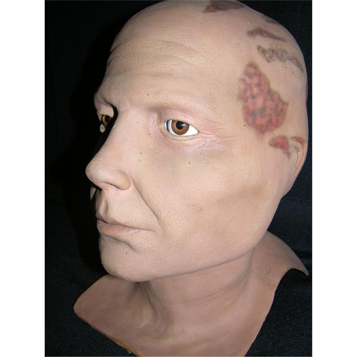 Mask for a background actor in the Alien Nation feature film, from Stan Winston Studios. This fully painted mask features the cranial markings for which the film's "visitors" became famous. Includes eyes. (13x12x9) Oversized item. Additional postage required.