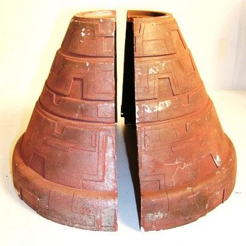 From the 1997 sci-fi film 'Alien: Resurrection,' this is a 'space factory' model that was used as part of the scenery on the planet. This prop was also used on the John Carpenter sci-fi film 'Ghosts of Mars' (2001) as background 'building' on Mars. The cone shaped prop is made from a fiberglass composite material and comprised of two sections. It is covered with the surface detail that a futuristic factory would have, and has been painted 'Mars' red and made to look aged. (measures approx. 11 1/2" diameter and 8" tall)