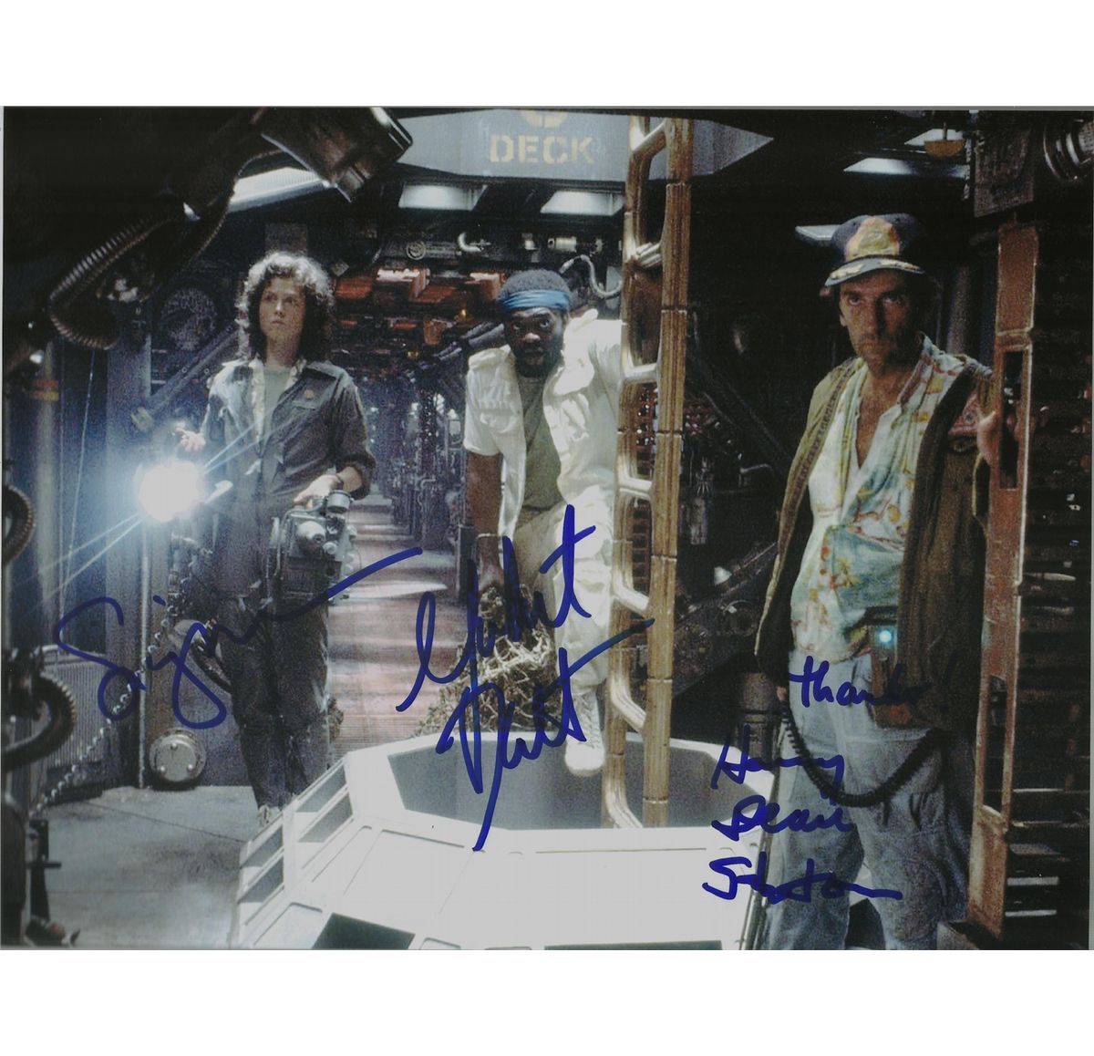 Color 8x10 signed by Sigourney Weaver and Yaphet Kotto and Harry Dean Stanton