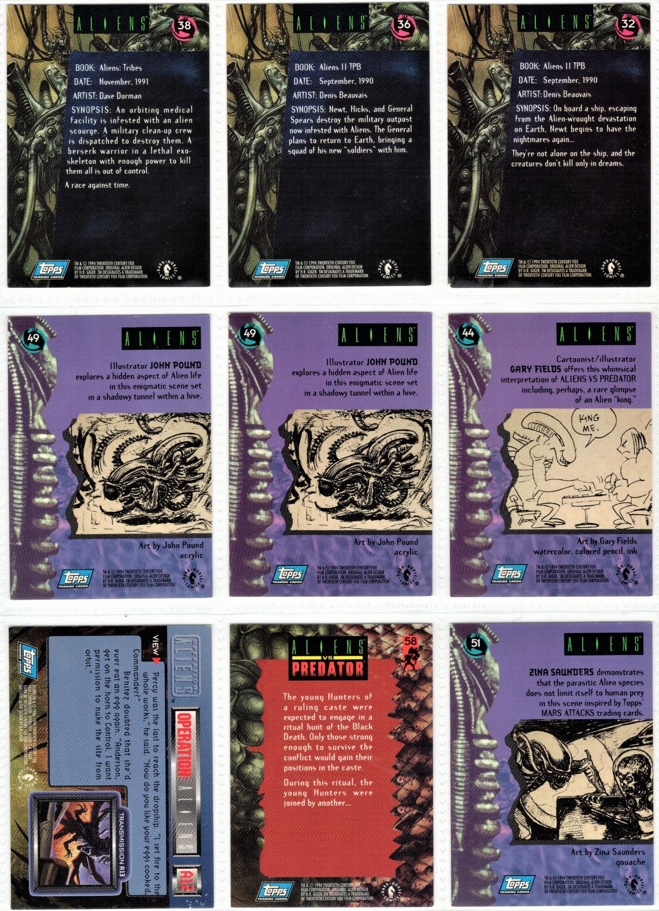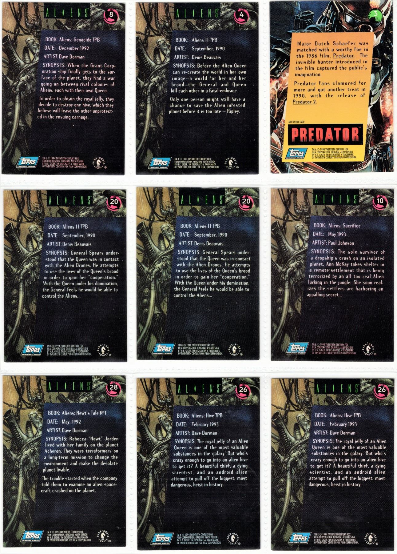 Aliens Predator 1994 Topps Trading Cards - 18 Cards Includes Duplicates