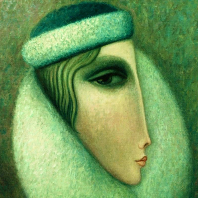 Combining time-honored religious icon painting with western style portraiture, the hauntingly beautiful art of Sergey Smirnov (1953-2006) is inspired by the 'Parsuna' art movement. "Alina" is a limited edition mixed media on canvas, printed in 2006, numbered in verso and hand signed by the artist. Includes Certificate of Authenticity! Measures approx. 13" x 17" (image).