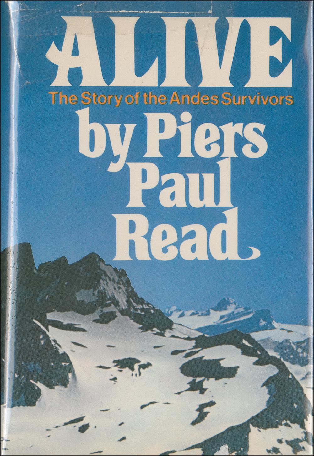 Signed book: Alive: The Story of the Andes Survivors. First edition, first printing. Philadelphia: J. B. Lippincott, 1974. Hardcover with dustjacket, 6.5 x 9.5, 352 pages. Signed on the inside front cover and first free end page by 15 of the survivors. In fine condition.