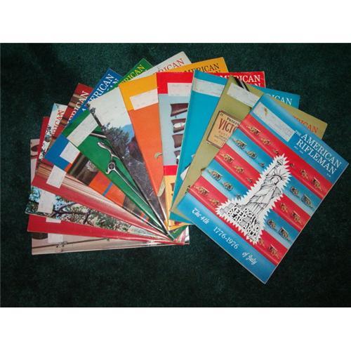 All 12 Issues Of "American Rifleman Magazine" For 1976. These are in VERY GOOD CONDITION with very minor soiling and wear. There are a few pages in some of the magazines with some minor tears. All the bindings are tight with no missing or deteriorated pages. Some of the covers have some minor fold-creases and some minor tears. There is some minor foxing throughout, and the original addressees label is on each front cover.