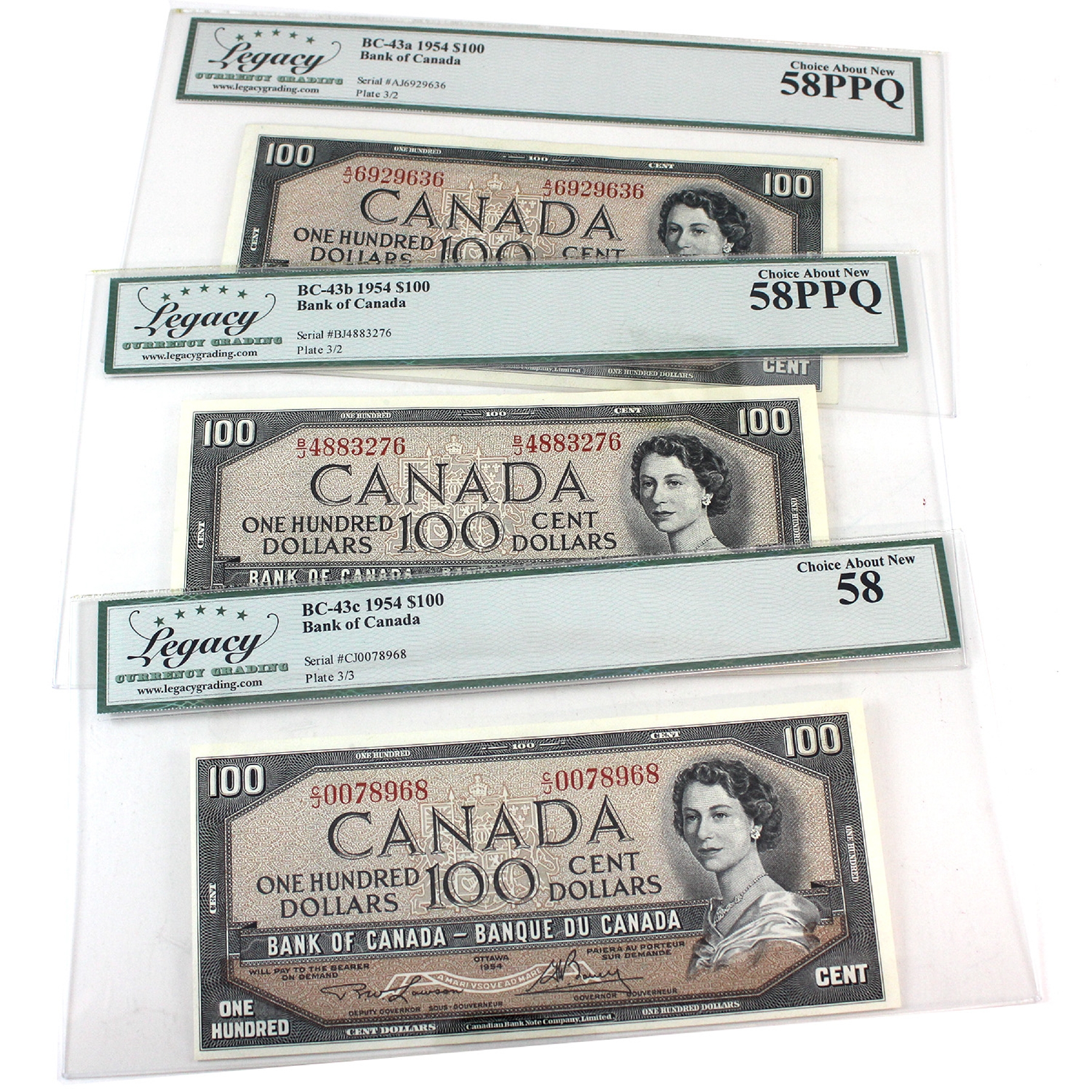 INCLUDES: BC-43a Beattie-Coyne SN: A/J6929636, BC-43b Beattie-Rasminsky SN: B/J4883276 & BC-43c Lawson-Bouey SN: C/J0078068. 3pcs.