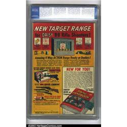 All-American Comics #102 (DC, 1948) CGC NM 9.4 Off-white to white pages. This book is not only Near Mint, but it is listed by Overstreet as scarce. It is the very last issue of this run, before it changes into All-American Western. Last issues are often extremely difficult to locate, and this one is no exception. It is also noteworthy because it is still a superhero book, with appearances by Green Lantern, Dr. Mid-Nite and Black Pirate. Because of the scarcity of this book, its not surprising that this is the only copy that has been graded as high as Near Mint by CGC. Alex Toth did the cover art as well as the Johnny Thunder story. Overstreet 2002 NM 9.4 value = $3,000. Important notice: We expect to be auctioning lots at the rate of 200-250 per hour. Sometimes eBay Premier live bid software cannot keep up with that pace, so we strongly recommend that you place a realistic proxy bid now as insurance to avoid disappointment. Also please note that all Heritage/CAA lots purchased through eBay Premier carry a 20% Buyer's Premium.