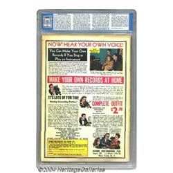 <B>All-American Comics #16 (DC, 1940) CGC VG+ 4.5 Cream to off-white pages.</B></I> After the Big Four of <B>Action Comics</B></I> #1, <B>Detective Comics</B></I> #27, <B>Marvel Comics</B></I> #1, and <B>Superman</B></I> #1, Overstreet lists this milestone issue next on its Top Golden Age Books list. Overstreet calls it "rare," while Gerber designates it "scarce," but you get the picture. To date, CGC hasn't awarded a higher grade than FN- 5.5 for an unrestored certified copy, so don't eschew this because you feel the grade isn't high enough. This is one of the nicest copies you will find of the book that has the origin and first appearance of the Golden Age Green Lantern. Sheldon Moldoff is responsible for the cover, while creator Martin Nodell does the GL story inside. DC's other Sheldon, of the Mayer variety, also contributes with a Scribbly feature. Overstreet 2004 VG 4.0 value = $18,286. <BR><BR><B>Important notice:</B> Heritage usually auctions material at the rate of 200-250 lots per hour. On some occasions eBay Live bid software or the Internet may not be able to keep up with the pace of the auction. We recommend placing a realistic absentee bid now as insurance to avoid disappointment. Occasionally the auctioneer may eliminate or reject an eBay Live bid, and the auctioneer may also reopen a lot after the close of the eBay live bidding (usually because we missed an audience bid), and may reject your bid even if it shows you as the winning bidder. By bidding via eBay Live, you agree that Heritage may award the lot to another bidder at its sole discretion under the circumstances described above or any other reasonable circumstances. Since eBay bids are not shown to us until we open the lot on the floor, we treat those bids just like floor bids. In most cases the floor responds before the eBay bid is presented to us, due to Internet lag time, so for consistency we have made it a policy that floor bids are always considered first over tie eBay live bids. Also please note that all Heritage lots purchased through eBay Live carry a 20% Buyer's Premium. Please make sure you read the Terms and Conditions before you bid.