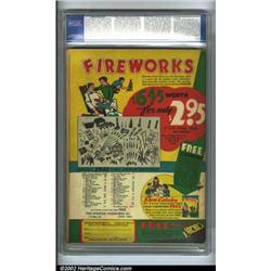 All-American Comics #27 (DC, 1941) CGC VF- 7.5 Off-white to white pages. Doiby Dickles, Green Lantern's humorous sidekick makes his first appearance with this issue. Most heroes of the Golden Age had to have a sidekick, and Green Lantern was just not complete without Doiby. He is taking out the bad guys on the cover, wearing a copy of the Green Lantern costume. Overstreet 2002 VF 8.0 value = $2,292. Important notice: We expect to be auctioning lots at the rate of 200-250 per hour. Sometimes eBay Premier live bid software cannot keep up with that pace, so we strongly recommend that you place a realistic proxy bid now as insurance to avoid disappointment. Also please note that all Heritage/CAA lots purchased through eBay Premier carry a 20% Buyer's Premium.