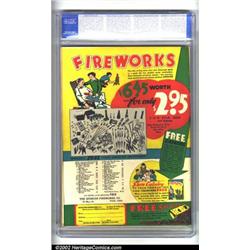 All-American Comics #27 (DC, 1941). CGC VF+ 8.5 Off-white pages Every superhero must have a sidekick, especially in 1941! After Robin's first appearance in Detective #38 sent Batman's sales soaring even higher, a new industry fad was born. Doiby Dickles became Green Lantern's bud in this issue (his nickname, pronounced in his classic Brooklyn accent, referred to the derby he always wore), and proved to be very popular with readers. An attractive high-grade copy with only slight edge wear. Overstreet 2002 VF 8.0 value = $2,292. Important notice: We expect to be auctioning lots at the rate of 200-250 per hour. Sometimes eBay Premier live bid software cannot keep up with that pace, so we strongly recommend that you place a realistic proxy bid now as insurance to avoid disappointment. Also please note that all Heritage/CAA lots purchased through eBay Premier carry a 20% Buyer's Premium.