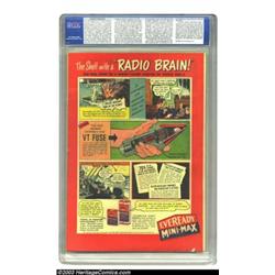 All-American Comics #71 Big Apple pedigree (DC, 1946) CGC VF/NM 9.0 Off-white pages. This supremely attractive copy has earned the highest grade CGC has assigned yet for this issue. Gerber rates the issue "uncommon," just another reason you should hazard a bid. It's a great looking comic, except for a small color flake (not a chip) on the back cover, it would surely have graded even higher. CGC notes, "2 inch tear on last page." Overstreet 2003 VF/NM 9.0 value = $619; NM 9.4 value = $800. Important notice: Heritage usually auctions material at the rate of 200-250 lots per hour. On some occasions eBay Live bid software or the Internet may not be able to keep up with the pace of the auction. We recommend placing a realistic absentee bid now as insurance to avoid disappointment. Occasionally the auctioneer may eliminate or reject an eBay Live bid, and the auctioneer may also reopen a lot after the close of the eBay live bidding (usually because we missed an audience bid), and may reject your bid even if it shows you as the winning bidder. By bidding via eBay Live, you agree that Heritage may award the lot to another bidder at its sole discretion under the circumstances described above or any other reasonable circumstances. Also please note that all Heritage lots purchased through eBay Live carry a 20% Buyer's Premium. Please make sure you read the Terms and Conditions before you bid.