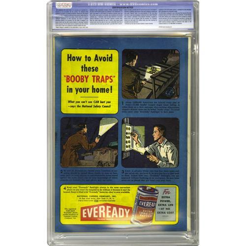 <B>All-American Comics #77 (DC, 1946) CGC NM 9.4 White pages.</B></I> This copy has a pedigree-type look to it, and indeed it's the highest-graded copy in CGC's census! Hop Harrigan, a long-running character in this series, got one of his rare cover appearances here. The interior features include Green Lantern, Dr. Mid-Nite, and even those three cut-ups from the Flash stories, Winky, Blinky, and Noddy. Overstreet 2006 NM- 9.2 value = $935. CGC census 6/06: 1 in 9.4, none higher. <BR><BR><B>Important notice:</B> Heritage usually auctions material at the rate of 200-250 lots per hour. On some occasions eBay Live bid software or the Internet may not be able to keep up with the pace of the auction. We recommend placing a realistic absentee bid now as insurance to avoid disappointment. Occasionally the auctioneer may eliminate or reject an eBay Live bid, and the auctioneer may also reopen a lot after the close of the eBay live bidding (usually because we missed an audience bid), and may reject your bid even if it shows you as the winning bidder. By bidding via eBay Live, you agree that Heritage may award the lot to another bidder at its sole discretion under the circumstances described above or any other reasonable circumstances. Since eBay bids are not shown to us until we open the lot on the floor, we treat those bids just like floor bids. In most cases the floor responds before the eBay bid is presented to us, due to Internet lag time, so for consistency we have made it a policy that floor bids are always considered first over tie eBay live bids. Also please note that all Heritage lots purchased through eBay Live carry a 22.5% Buyer's Premium. Please make sure you read the Terms and Conditions before you bid. This lot is being auctioned in conjunction with a live floor auction by Heritage Auction Galleries. All final auction and invoice information will be supplied by Heritage Auction Galleries, and all other information should be considered preliminary. Lot:41001 <BR><BR><B>Winning Notification and Billing:</B> After the FINAL session in this auction is complete, Heritage will send e-mail and snail mail invoices. This process normally takes several days. All final auction and invoice information will be supplied by Heritage Auction Galleries, and all other information should be considered preliminary. <BR><BR>This auction will be conducted on a live auction floor and over the Internet through eBay Live. If you choose to place an absentee bid, please take a moment to <font color='#0000ff'><u><a href='http://pages.ebay.com/liveauctions/help/before/laabsentee.html'>learn how eBay Live absentee bidding works</a></u></font><font color='#000000'>