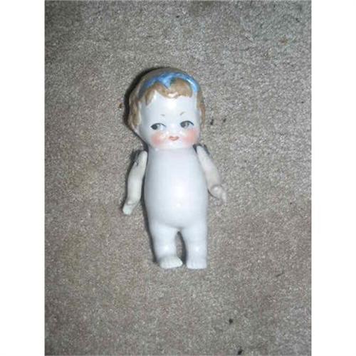 All Bisque Minature 3.5 inches tall, moveable arms with wire, molded hair and blue ribbon bow painted in hair, marked Germany on back. She comes from a smoke free environment. Buyer to pay $8 for shipping, handling, and insurance. Thanks for viewing.