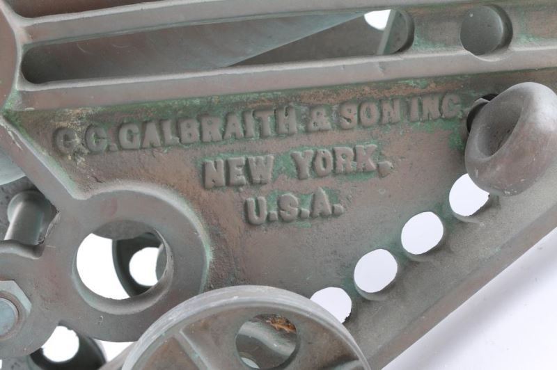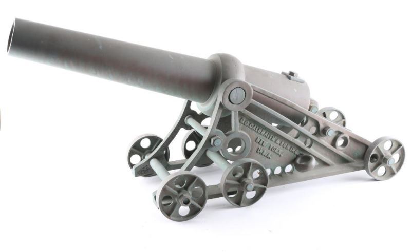 with name molded into carriage (Galbraith & Smith, New York USA.) Circa turn of the century or slightly later. Barrel measures 29" & carriage measures 27" x 12". Has a nice blue-green patina.