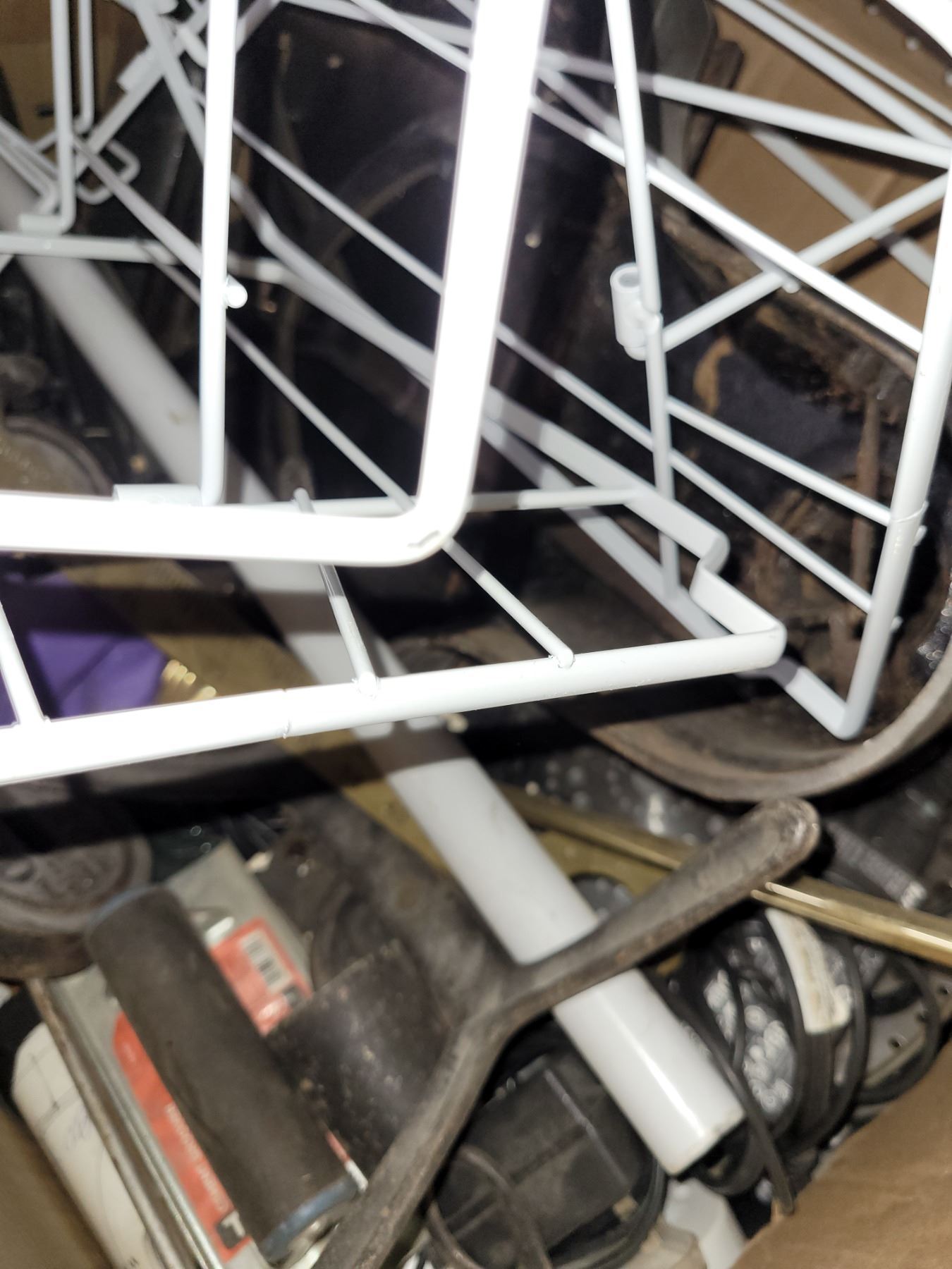 All Contents on Upper Shelf Including Antique Weight Scale (in box), Electronics, Fridge/Freezer Baskets +++ | Not Available for Shipping